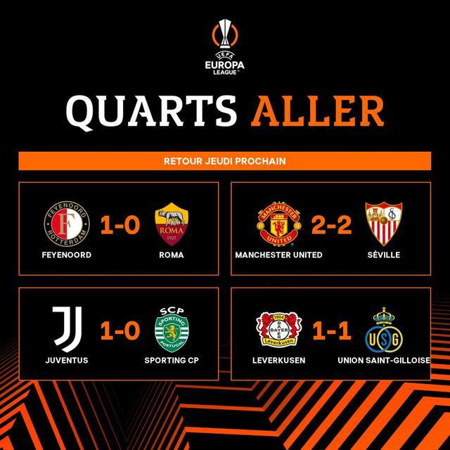 罗马0-1客负费耶诺德,尤文2-2遭塞维绝平,尤文1-0小胜葡体,勒沃库森1-1圣吉罗斯。次回合交手,这几组对手你看好谁最终晋级?
