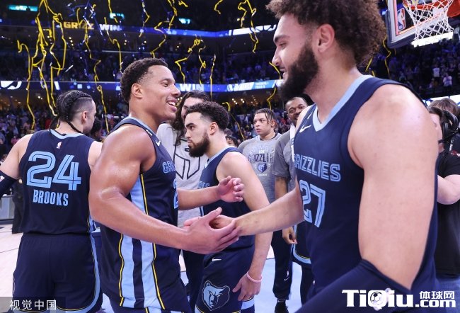 灰熊首发阵容:布鲁克斯,小贾伦-杰克逊,蒂尔曼,贝恩,泰厄斯-琼斯