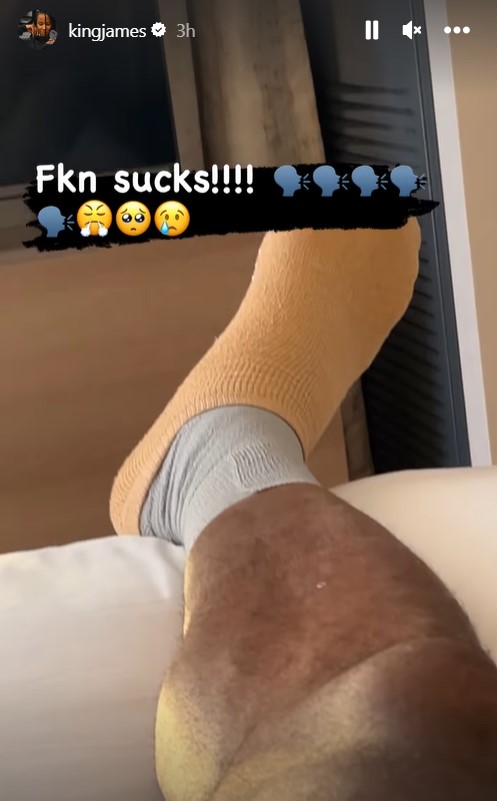 28日,湖人官方更新傷病報告,勒布朗·詹姆斯因右腳傷勢確定缺席明日對陣灰熊的比賽。老詹IG曬自己養傷的畫麵,並爆粗口寫道:「太糟糕了!」