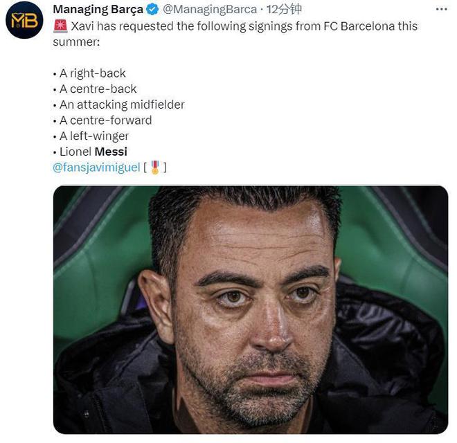 (哈维助攻集锦)哈维列出6人引援名单,梅西赫然在列,巴萨已备好详细回归计划