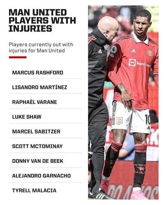 数据统计显示,曼联当前已经有9人伤停: