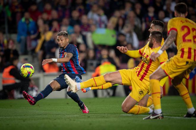 第37分钟,巴萨差点打破僵局:拉菲尼亚角球传中,阿劳霍抢点凌空垫射,加萨尼加将球扑出。巴萨众将示意皮球已经入网,但西甲没有鹰眼技术,只能通过各个机位回放寻找答案,最终确定皮球没有完全越过门线。