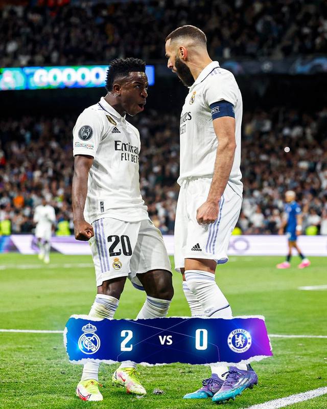 第22分钟,卡瓦哈尔在前场送出过顶挑传,禁区内的维尼修斯凌空垫射,凯帕把球扑出,本泽马跟上补射空门入网,皇马1-0领先切尔西。