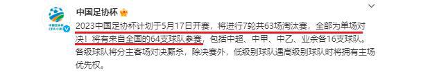 就在外界等待之时,足协公布了2023年的最新安排,本次杯赛涵盖了全部四级联赛,从中超,到中甲中乙,再到中冠或其他业余队,共有64支球队,除了决赛,全部区分主客场,高级别球队与低级别球队相遇时,后者优先主场,如果放弃,高级别球队才可主场作战。