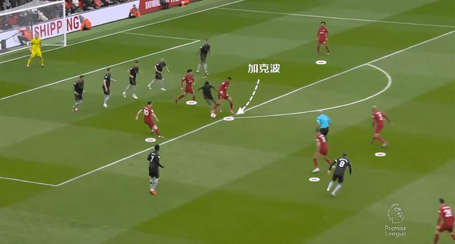利物浦缩小分差的第一个进球,就是加克波无球牵制和中场前压的结果。
