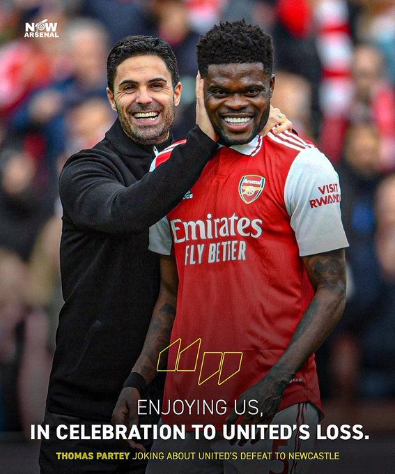 近期,加纳电视台的主持人阿娜莫阿发布了一个视频,她在与阿森纳后腰托马斯一起用餐,就在用餐过程中阿娜莫阿邀请托马斯向阿森纳球迷聊两句时,托马斯对着镜头忽然欢呼起来:加入我们一起庆祝曼联的输球(Join us in celebration of United's loss)。