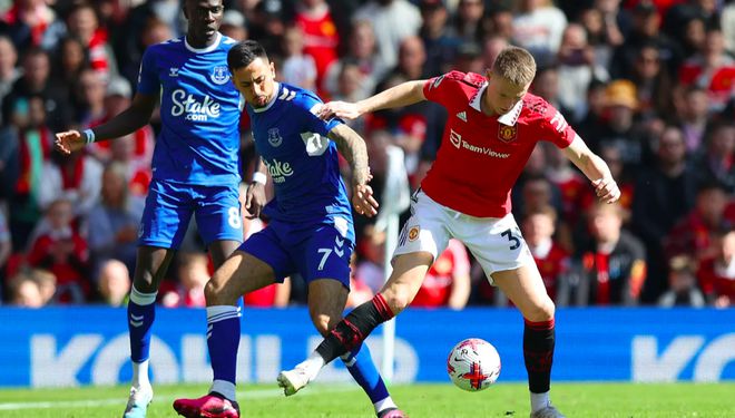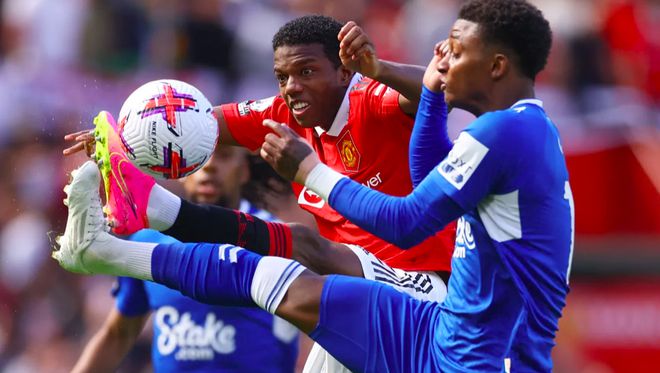 开场之后,曼联踢得相当积极,主动将阵型压上,并且采取了高位逼抢的战术。球员的奔跑也是不吝惜体力,安东尼甚至跑到了本方的底线,使出全力挡出了埃弗顿的传中。