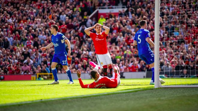 5分钟后,拉什福德连续两次获得破门的机会,可惜都被皮克福德化解。曼联的攻势如潮,接到B费的角球,安东尼的射门击中了立柱,埃弗顿门前险象环生。