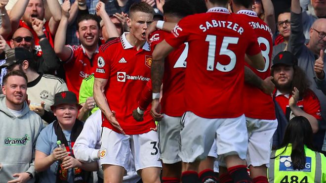 第36分钟,拉什福德吸引了6名埃弗顿球员的防守,桑乔送出助攻,麦克托米奈插上,打近角破门。