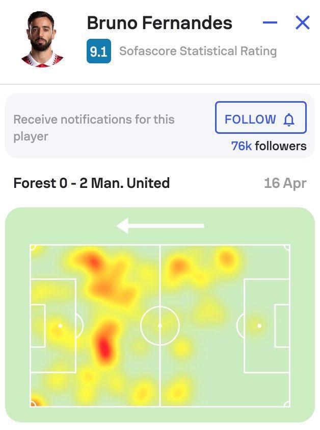 在踢诺丁汉森林的比赛中,B费处于中场突前的一方,他负责在两个肋部接应曼联的边锋,他的活动范围要么在右边路拉边给安东尼内切制造机会,要么在左肋部接应桑乔的传球,本场比赛B费跑动了9.6公里,是曼联球员跑动距离最远的一人,创造了5次射门机会、2次射门击中了门框。埃里克森则是更多协助梳理后场的球路,并且适当跟B费、卡塞米罗进行换位。