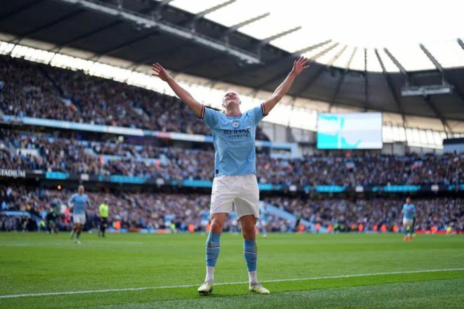 在英超第31轮的一场比赛,曼城主场对阵莱斯特城这场比赛,“英超大魔王”哈兰德就上演进球好戏了,仅上半场比赛哈兰德就打进2球,继续刷爆英超纪录。