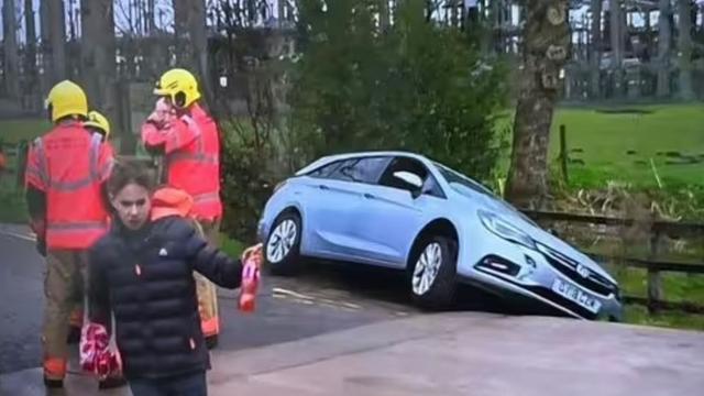 在一名市民拨打了999后,警车、救护车、消防车都赶到了现场。经过现场勘察,事态并没有人们所担心的那么严重,只是一辆银色的汽车卡在了沟里。