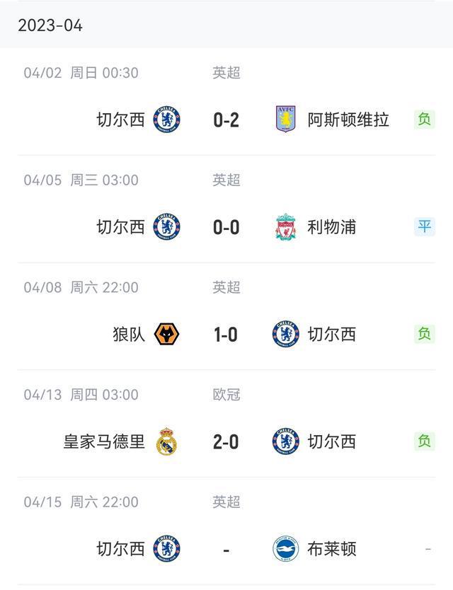 切尔西4月比赛还未进过球↓