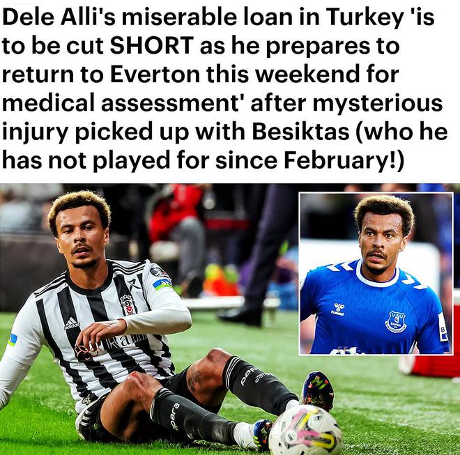 英国媒体邮报报道,前热刺球星阿里在土耳其踢球的日子将会提前缩短。邮报透露,在贝西克塔斯神秘受伤之后,阿里将在本周末重返埃弗顿,但不知道具体伤势如何,也不知道他将在英国待多久。