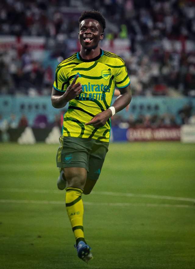 网友制作的萨卡身穿2023-24赛季客场球衣的效果图。