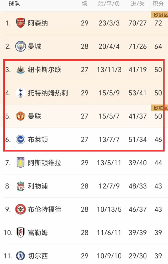相比切尔西和利物浦,布莱顿则看到了机会,目前他们和前四对手只差4分。不出意外的话,英超最后2个前四名额(阿森纳和曼城基本锁定前四),将在纽卡斯尔、热刺、曼联和布莱顿这4支强队当中产生。