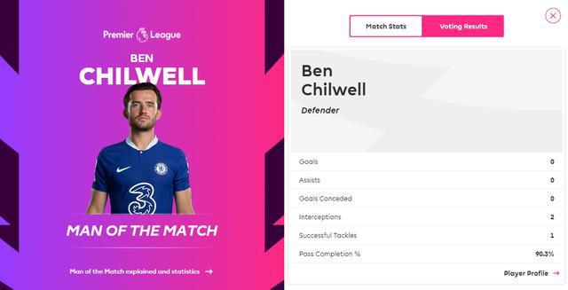 本场比赛,奇尔维尔贡献2次拦截,1次成功铲球,传球成功率高达90.3%。