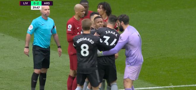 第39分钟,扎卡和阿诺德发生冲突,两人各申请一张黄牌。