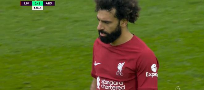 下半场开场,比分落后的利物浦攻势渐起。第52分钟,利物浦前场左侧开出角球,阿森纳禁区内一片乱战,若塔拼抢中被霍尔丁从身后绊倒,蒂尔尼果断判罚点球,拉姆斯代尔抗议被黄牌警告,结果萨拉赫主罚点球直接偏出门框。利物浦错失绝佳扳平比分的机会,这是埃及法老王本赛季第二次罚丢点球。