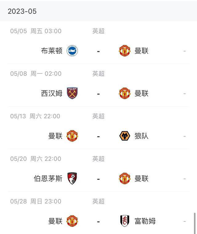 曼联剩余赛程: