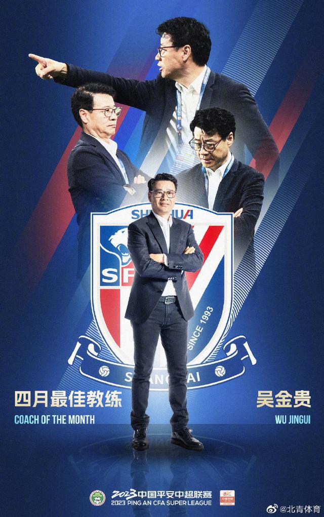 恭喜上海申花主教练吴金贵,当选2023中超联赛四月最佳教练!