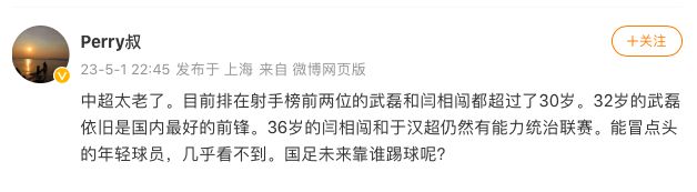 对此,裴力哀叹道:“中超太老了。能冒点头的年轻球员,几乎看不到。国足未来靠谁踢球呢?”