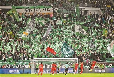 昨日,2023赛季中超联赛开幕式在改造复建后的北京工人体育场举行,这是“新工体”首次开放迎来观众。开幕式结束后,北京国安队在主场迎战梅州客家队,最终1比1战平对手。随着联赛恢复主客场制,比赛也吸引大量球迷入场观赛。据统计,在这场比赛中,共有46818名观众入场。详见06版 摄影/本报记者 崔峻