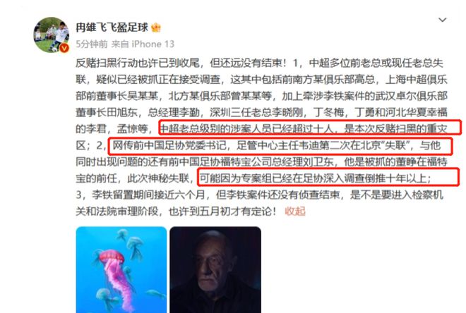 据记者冉雄飞在社媒上披露,体坛又一条大鱼失联,而且还曾经担任足协一把手。此次,冉雄飞主要透露了3个重要消息,其中包括中超俱乐部高层连续被抓、足协大佬第2次失联以及李铁案宣判时间。