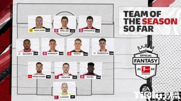 德甲官网评2021-2022赛季至今最佳阵容: