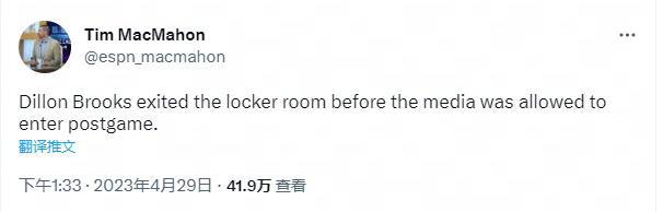 狄龙-布鲁克斯11投4中拿下10分4篮板,下半场一分未得。在系列赛前半段他嚣张挑衅勒布朗,制造了大量争议,虽然最近两场收敛了气焰,但他的种种行为仍被视为灰熊不够成熟的象征。