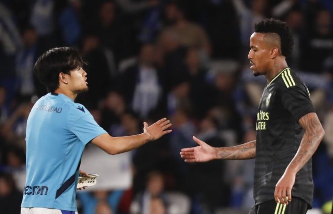 比赛第47分钟,皇马后防线乱了,米利唐回传门将变乌龙助攻,久保建英收大礼包抄空门得手,皇马0-1皇家社会;比赛第61分钟,皇马再遭打击,卡瓦哈尔铲倒了穆尼奥斯,拿到本场比赛第二张黄牌,被红牌罚下,皇马少打一人;比赛第85分钟,巴雷在前场左边路内切小角度劲射破门,皇马0-2皇家社会。