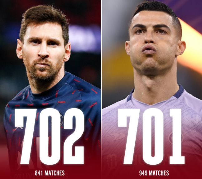 值得注意的是,梅西在欧洲俱乐部生涯的进球数达到702个,超越了701球的C罗,前者花费了841场,而C罗的出场次数是949场。
