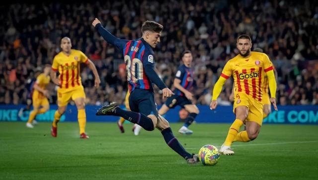 上半场比赛开始,巴萨率先制造威胁,第5分钟,赫罗纳后场传球失误,法蒂断球后突入禁区横传,莱万晃开角度后射门偏出。