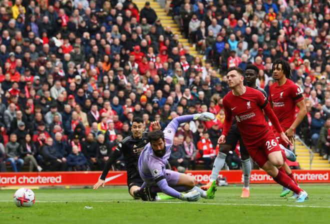 打破僵局后的枪手依旧攻势不减,第12分钟津琴科的外围重炮被阿利森奋勇挡出,5分钟之后,萨卡右路送出传中球,可惜后点包抄的热苏斯射门没有压住,错失了扩大领先优势的绝佳机会,扛住客队开局疯狂进攻的利物浦,在第20分钟打穿了阿森纳的防线,可惜罗伯逊的半单刀机会没有把握住,禁区左侧的射门偏出了立柱。